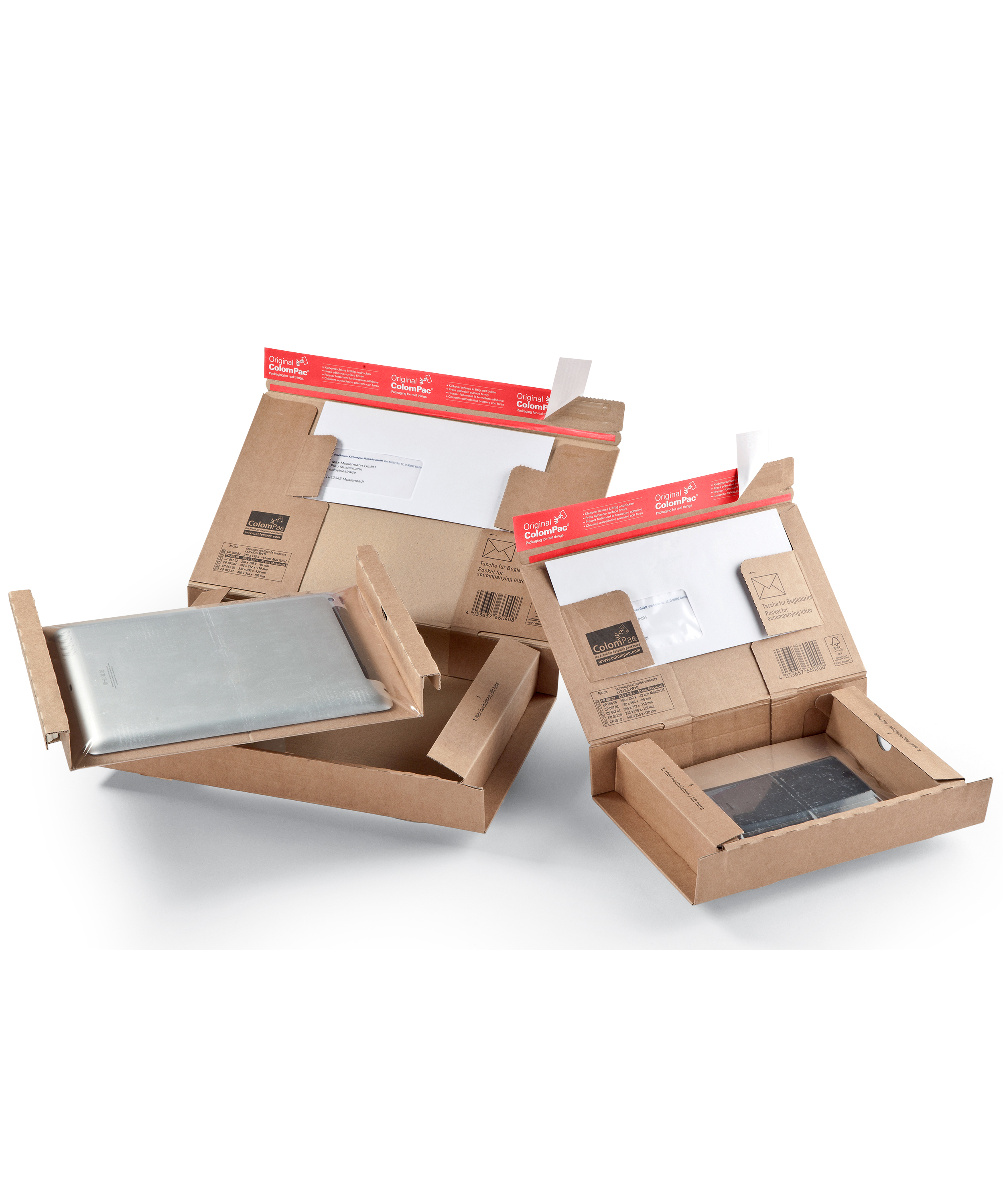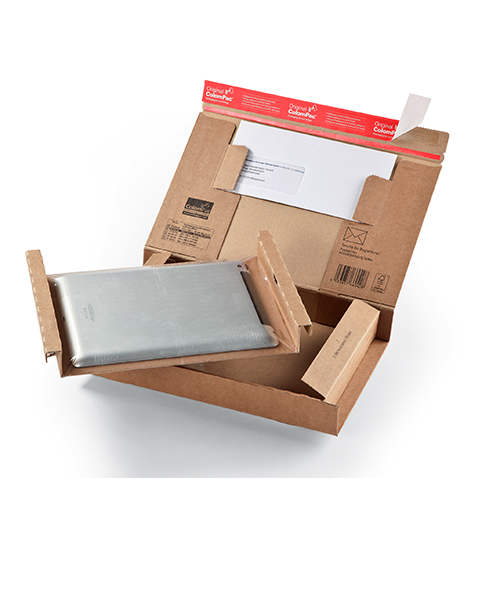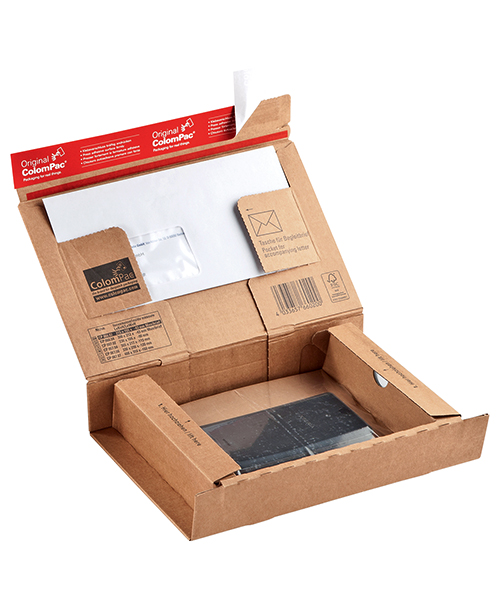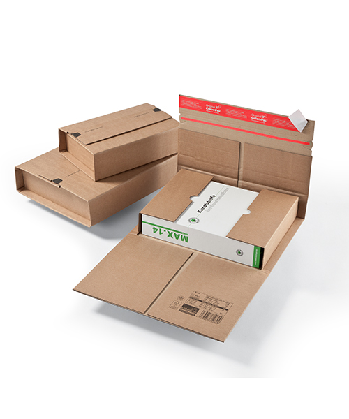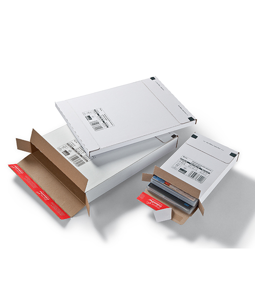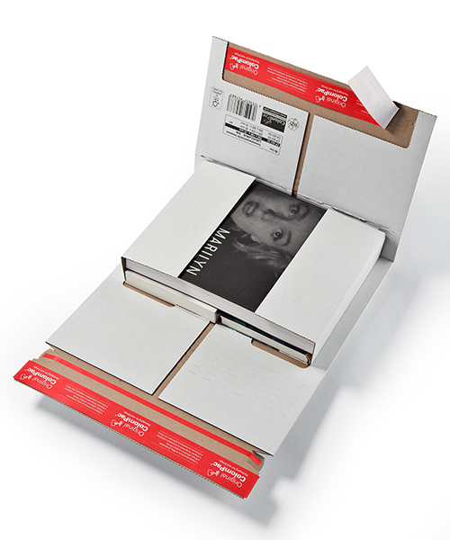 Convient pour CD, livres, catalogues, calendriers, brochures, magazines, catalogues, supports de données et bien d’autres choses encore. La fermeture autocollante et sûre de ColomPac® économise du temps et ne nécessite aucun autre moyen de fermeture. Avec une bande d’arrachage intégrée pour une ouverture simple et rapide. Fabrication en cannelure B résistante Protection renforcée aux coins et renforcement des arêtes sur le pourtour. Nous consulter pour la personnalisation de vos emballages eCommerce.