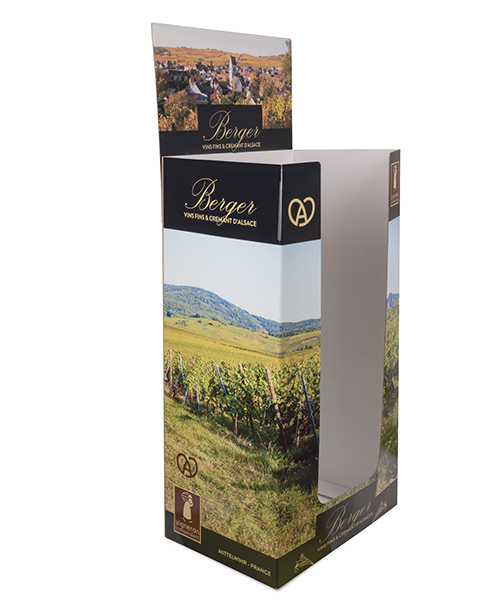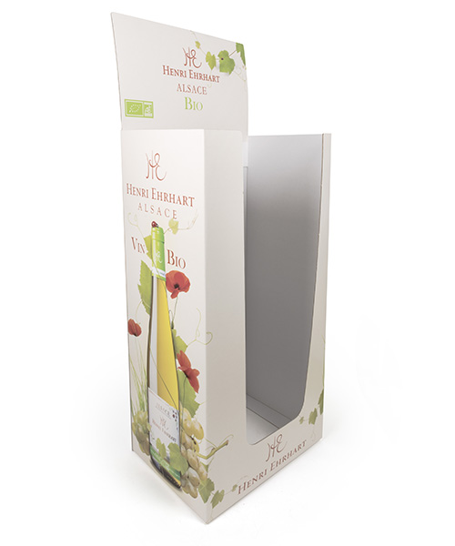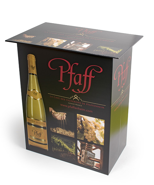 Parfaitement adaptées à la vente du vin en grande distribution, les Box Palettes sont les reines des têtes de gondole, avec un maximum de visibilité. Rapides et faciles à mettre en place, les Box Palettes sont faciles à transporter et à stocker. Dotées d'un fronton dépliables, elle sont également un excellent support de communication sur le point de vente. Disponibles en plusieurs formats et finitions.
